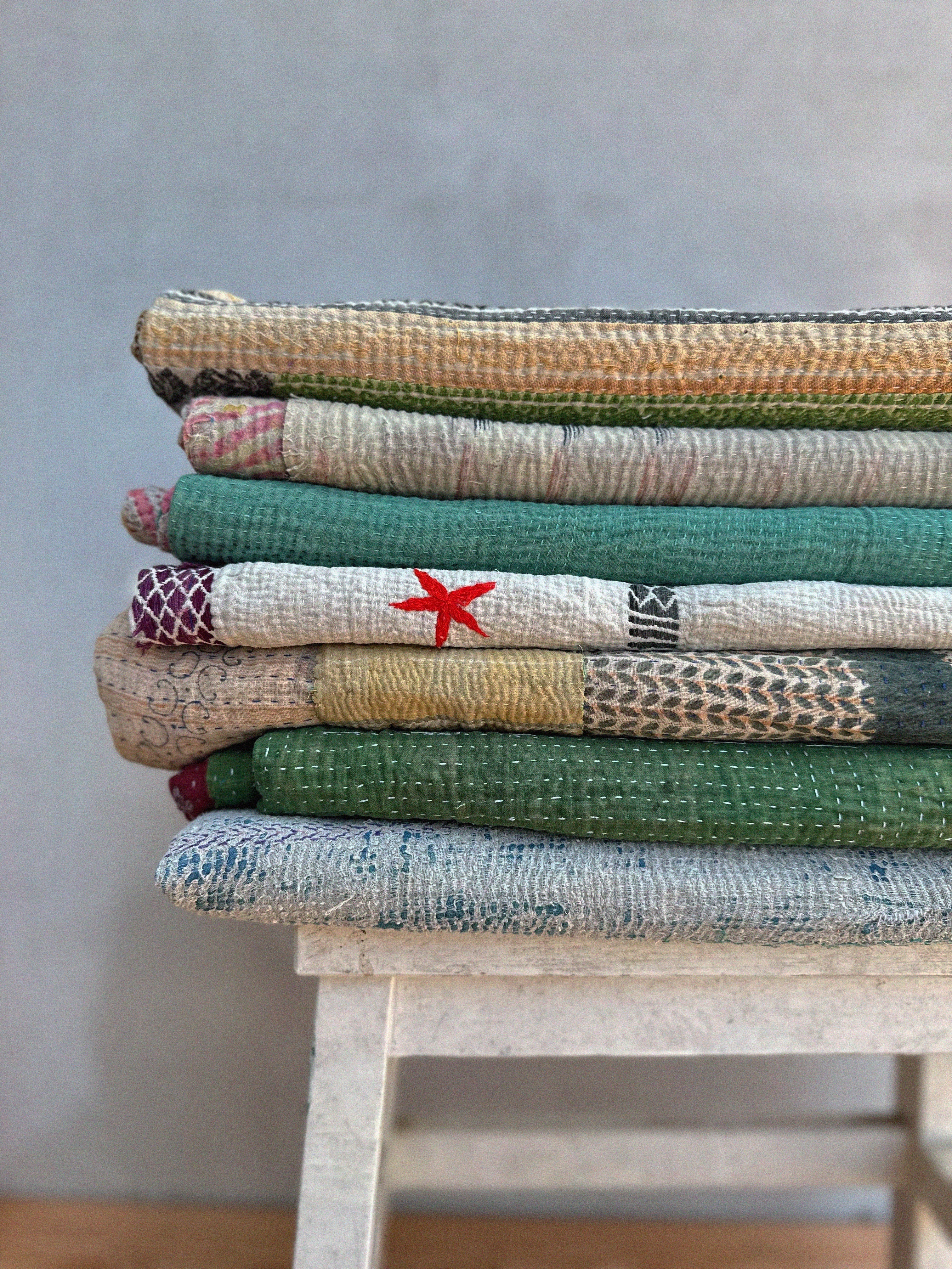 One of the most exciting things is when a shipment arrives from India and I can finally see and touch these beautiful handmade kantha blankets!