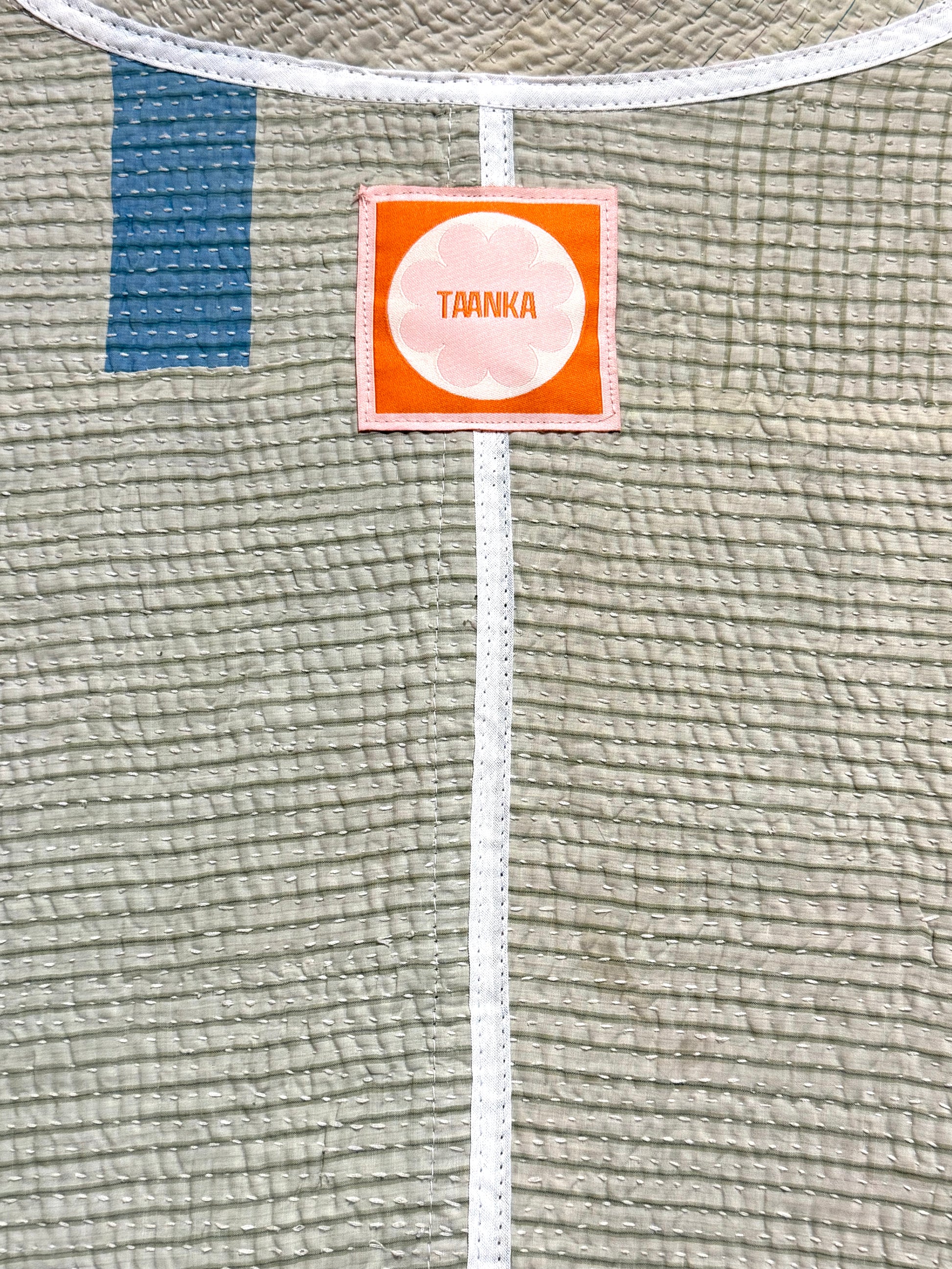 This unique jacket is crafted from heavy weight recycled vintage kantha quilts in collaboration with our Budapest-based sewing studio. The entire surface of the textile features thousands of tiny hand stitches, a unique and unrepeatable pattern that gives the piece its amazing timeless character.